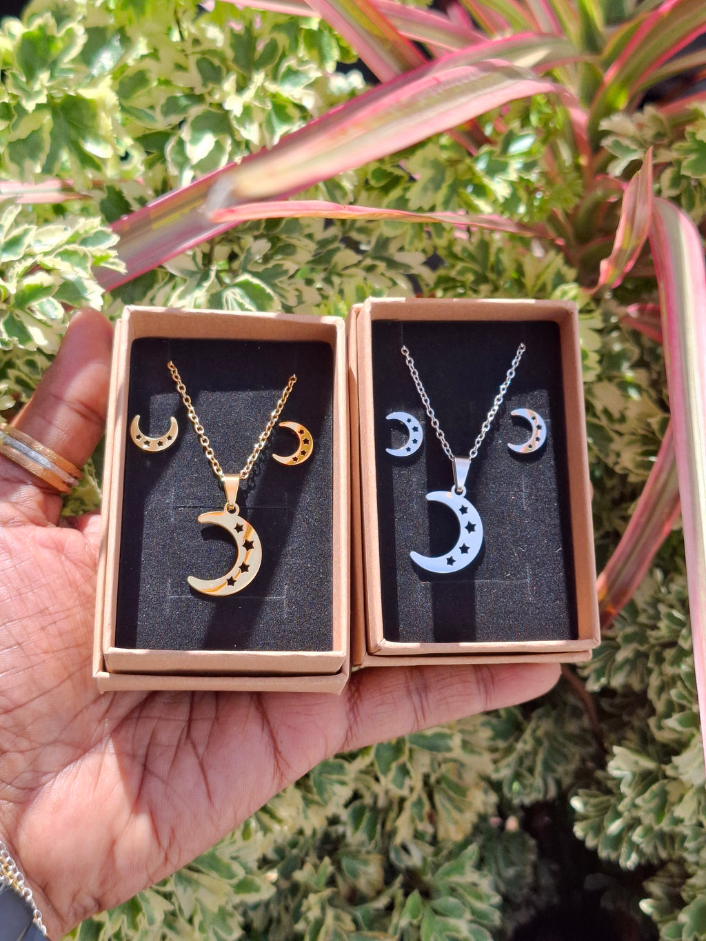 Moon Phases Necklace & Earring Stainless Steel Set