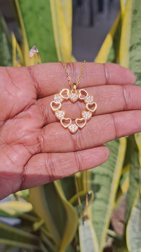 Hearts 6 Rhinestones 7 Hollow Stainless Steel Necklace